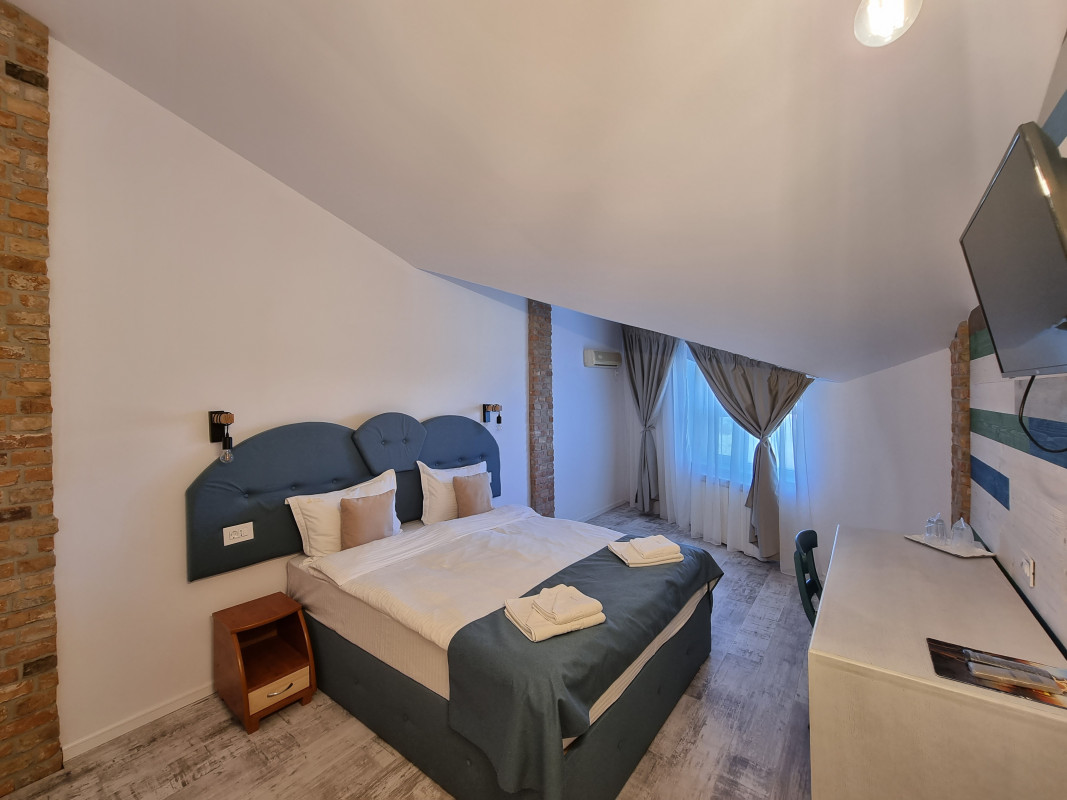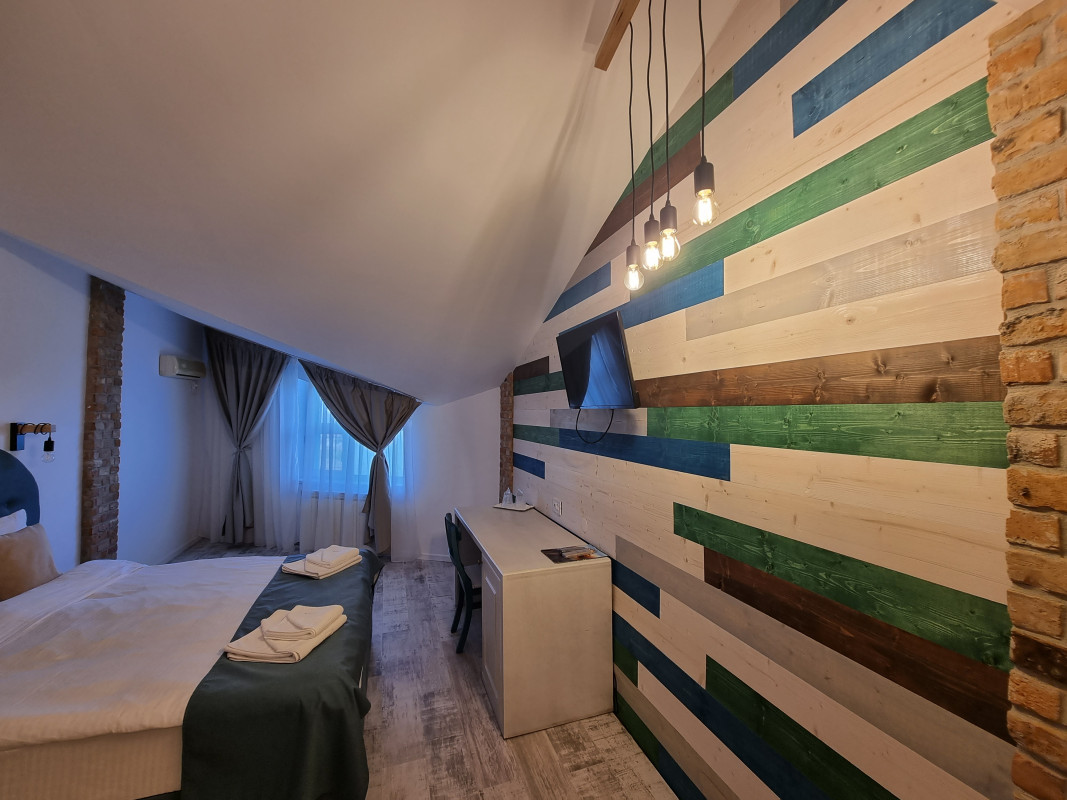 Camera are baie proprie și este dotată cu aer condiționat, TV si minibar.