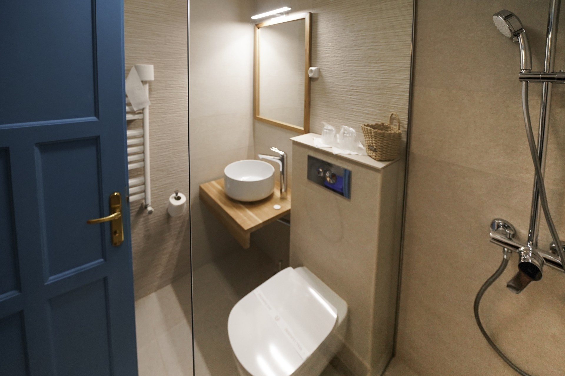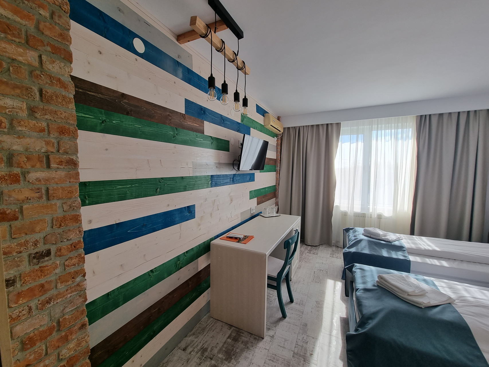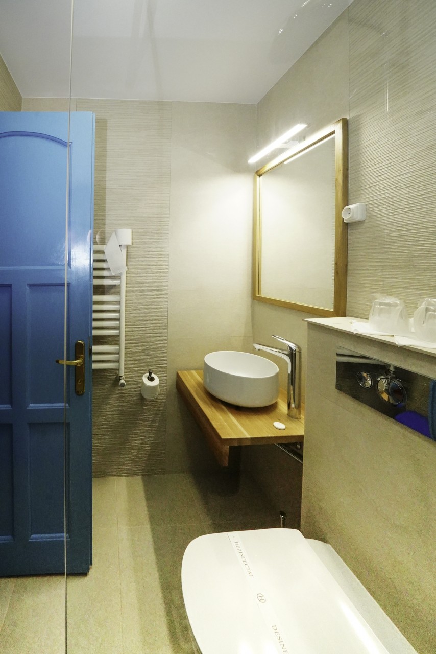 Camera situata in hotel, cu 2 paturi, dotata cu aer conditionat, minibar si baie proprie